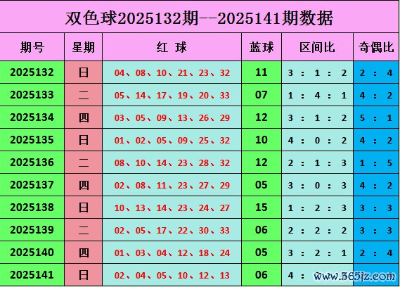 双色球第2025141期开奖:本期开奖号:02 04 05 10 12 13。蓝球:06,奇偶比为2:4。