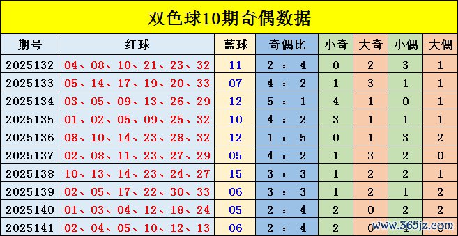 上期蓝球号码06,为小偶数,近50期蓝球奇偶比22:28,奇数偶数出号率偶数占优;近10期蓝球奇偶比5:5,奇数偶数出号率平衡。