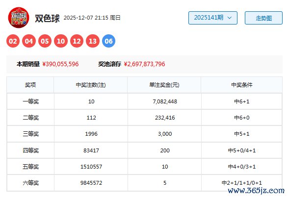 双色球25141期开奖,红球02 04 05 10 12 13,蓝球06。当期红球号码大小比为0:6,三区比为4:2:0,奇偶比为2:4。景色方面,红球开出2组连号04、05和12、13;1组同尾号02、12;2枚重号04、12;蓝球开出遗漏1期的偶数06。